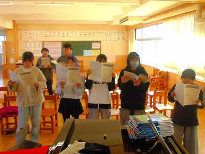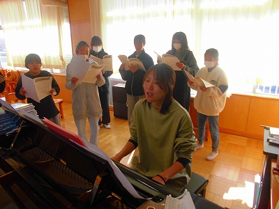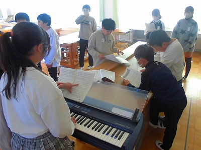 「栄光の架け橋」合唱のために、2教室に分かれてパート練習です。