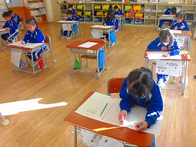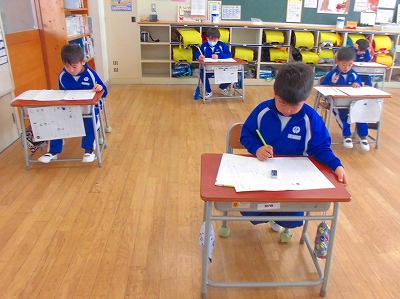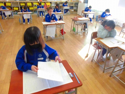 総合学力調査に真剣に取り組む、1年生のようすです。