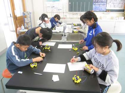 回路でテスターを作り、身の回りのいろいろなものを調べました。
