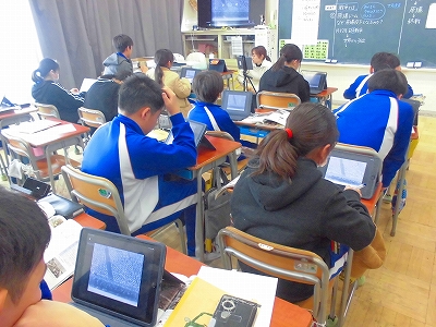 先生から動画が配信され、それぞれのタブレット上で視聴します。