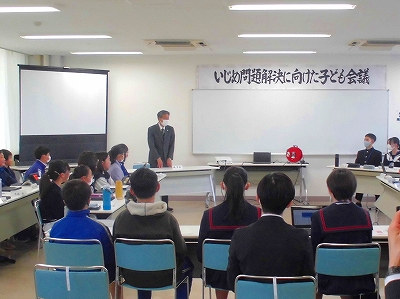 1月21日(火)いじめ問題解決に向けた子ども会議 その1 公開日 2025/01/21 更新日 2025/01/21 できごと 市内の小中学校の代表者が集まり「いじめ問題解決に向けた子ども会議」が開催されました。本校からも未来を担う代表者2名が参加しました。