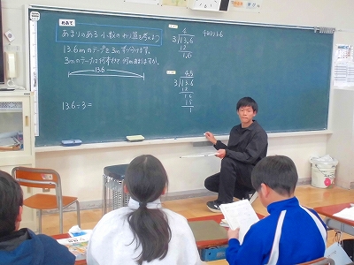 まずは自分で計算してみて、小数の割り算の筆算方法を追求します。