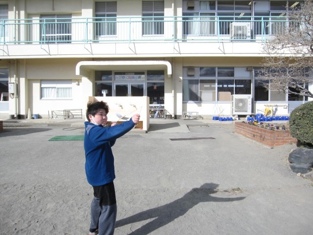 はがきとわりばしでグライダーを作りました。外は風が強くてグライダーを飛ばすには向かない日でした。