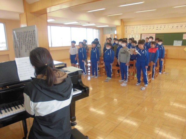 3月18日(火)5年生 音楽 公開日 2025/03/18 更新日 2025/03/18 できごと 卒業式の式歌「大空がむかえる朝」の練習です。写真からも全員の気合いが感じられるくらいの集中と意気込みでした。 +3