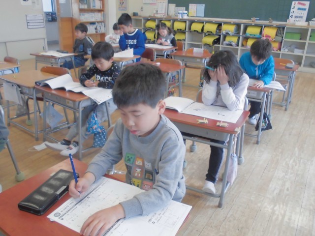 3月18日(火)1年生 国語 その2 公開日 2025/03/18 更新日 2025/03/18 できごと プリントやワーク、いろいろなパターンの問題をたくさん解きながら、一年間の復習を頑張ります。 +1