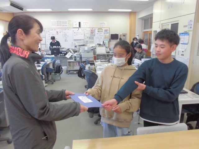 3月21日(金)6年生 先生方へ感謝のお手紙 公開日 2025/03/21 更新日 2025/03/21 できごと お世話になった先生方へ、クラスのみんなで書いた感謝のお手紙を手渡しました。職員室へ届けに来てくれた6年生たちです。 +1