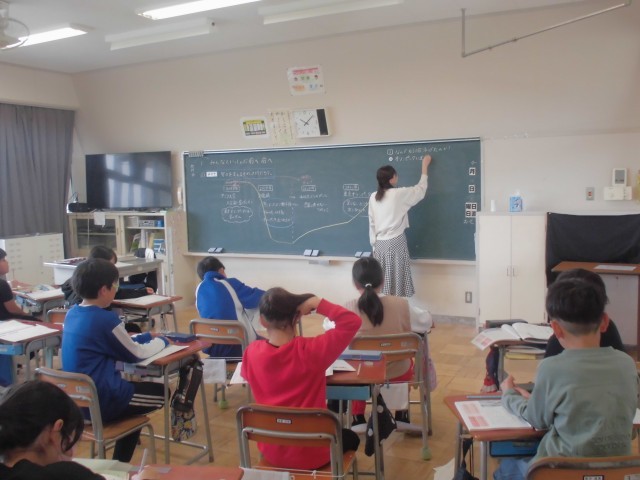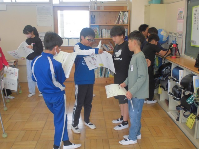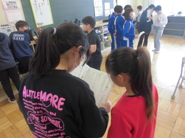 自分の意見をしっかりともてたら、友だちと交流します。お互いに高め合う道徳の授業です。