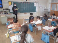 4月11日(金)2年生 外国語活動 公開日 2025/04/11 更新日 2025/04/11 できごと 最初の授業なので自己紹介や、好きな動物や果物を英語で発表し合います。担任の先生もALTと英語でやりとりします。