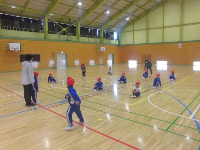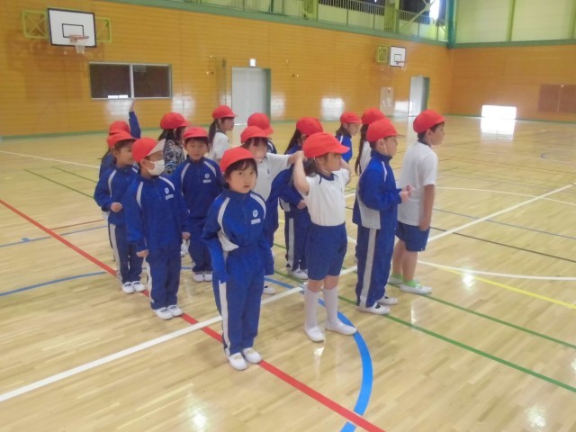 「体操の隊形に開け!」「1、2、3!」上手にできました。