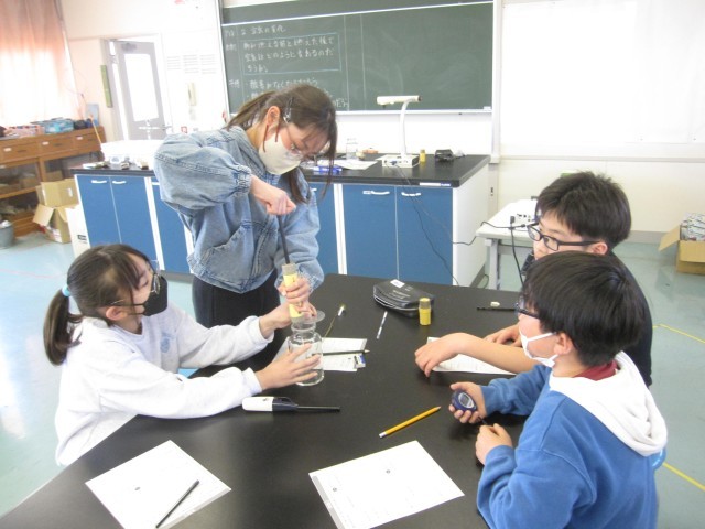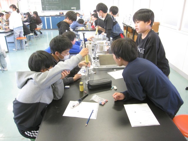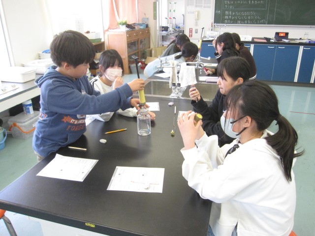 4月16日(水)6年生 理科 公開日 2025/04/16 更新日 2025/04/16 できごと ろうそくが燃える前と燃えた後の空気を、気体検知管を使って調べました。 物が燃えると、空気中の酸素の一部が使われて、二酸化炭素ができることがわかりました。 +5