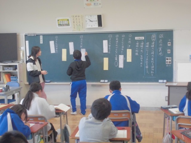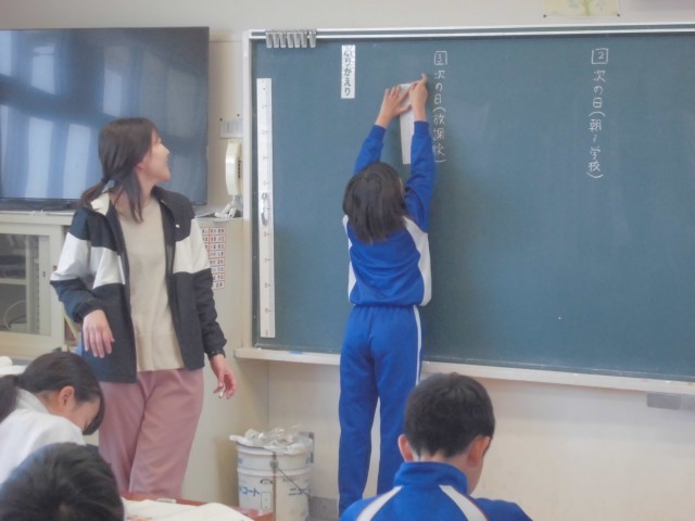 4月16日(水)5年生 国語 公開日 2025/04/16 更新日 2025/04/16 できごと 自分の意見を書いた短冊が色別に黒板に貼られていきます。自分の意見をしっかりもち、意見を交流する場となります。 +4