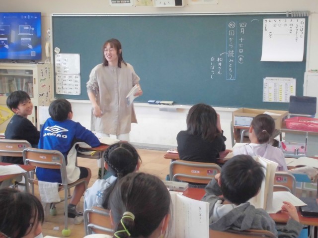 4月17日(木)4年生 国語 公開日 2025/04/17 更新日 2025/04/17 できごと タイトルの意味や登場人物のようすなど、読み取ることを確認してから、先生の範読を注意深く聞きます。 +3