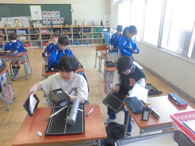 3年生から毛筆が始まります。今回は、道具を出して配置して、元通り片付ける練習をしました。