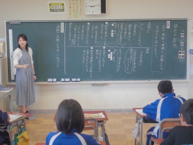 4月21日(月)5年生 国語 公開日 2025/04/21 更新日 2025/04/21 できごと 黒板の白い磁石は、このクラスオリジナルのネームプレートです。たくさん意見が発表されたことが分かります。