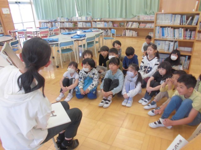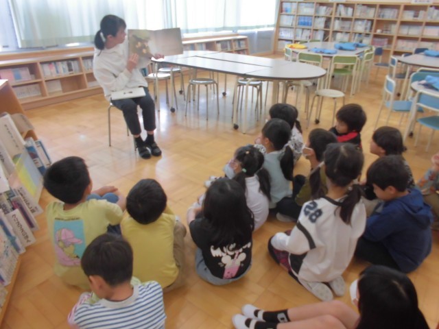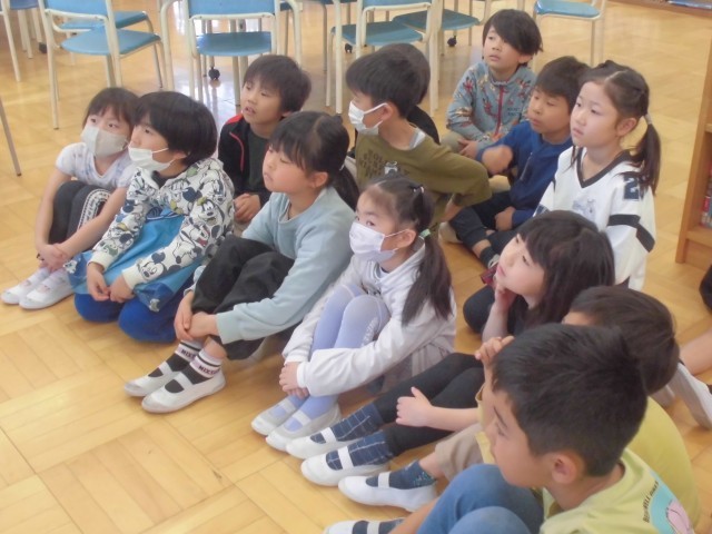 担当の先生が読み聞かせをしてくれました。読み聞かせは大好きなので、この集中ぶりです。