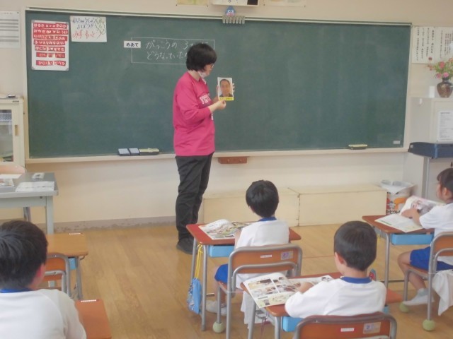 写真でこの学校の先生たちを確認します。早く顔と名前を覚えてくださいね。