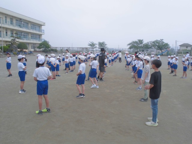 4月25日(金)体育集会 公開日 2025/04/25 更新日 2025/04/25 できごと ちょっと涼しい朝になりましたが、服装は半袖、短パンで統一して体育集会です。体操の隊形を何度か練習し、声や動きを合わせること、前や横を見て自分の位置を調整することなど、集団行動を学びました。 +5