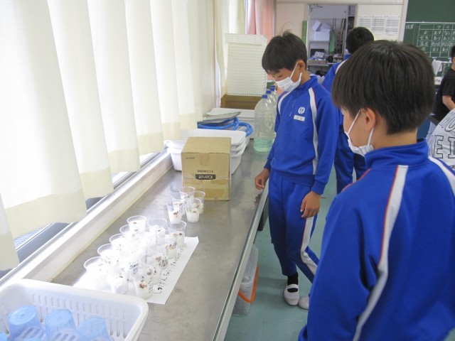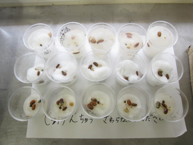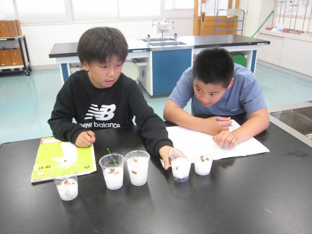4月28日(月)5年生 理科 公開日 2025/04/28 更新日 2025/04/28 できごと 4月21日(月)にセットした発芽の条件を調べる実験の結果を確認しました。種子が発芽するためには、水、空気、適した温度が必要なことがわかりました。 +7