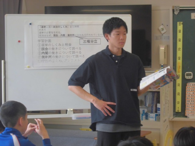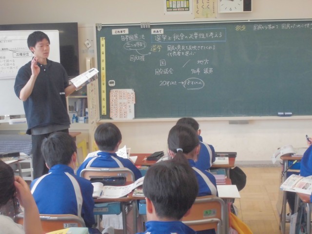 4月28日(月)6年生 社会 公開日 2025/04/28 更新日 2025/04/28 できごと 選挙と税金の必要性について考えました。まず選挙で投票率がよくないのはどうしてだろう?6年生が真剣に考えました。 +3