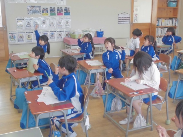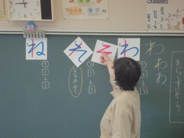 4月28日(月)1年生 国語 公開日 2025/04/28 更新日 2025/04/28 できごと 似ているひらがな「わ」「れ」「ね」を比べながら、違いをしっかり覚えます。上手に見えるポイントも押さえて、練習します。 +4