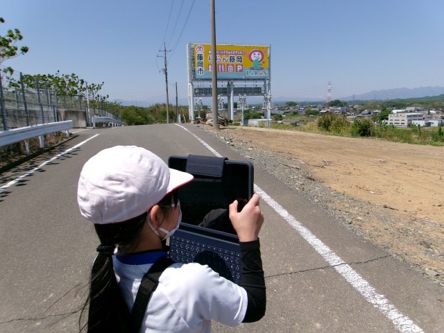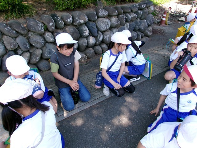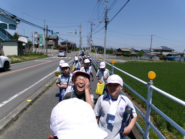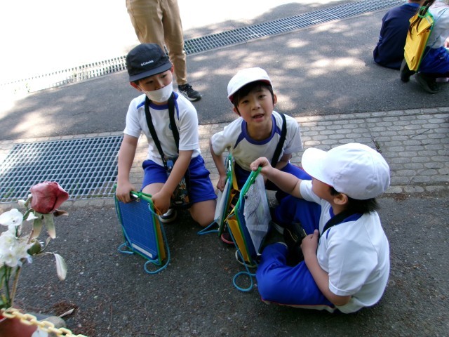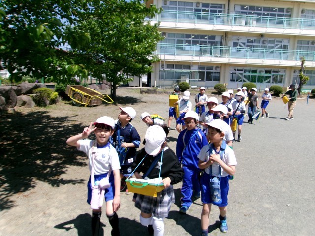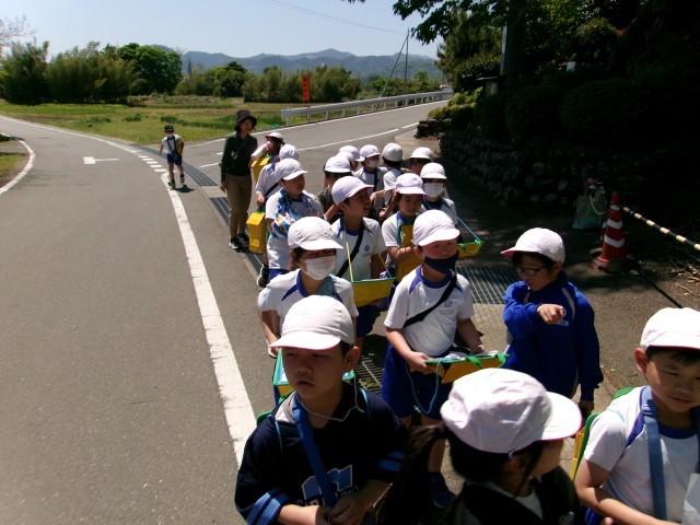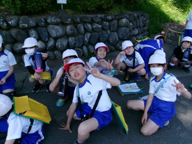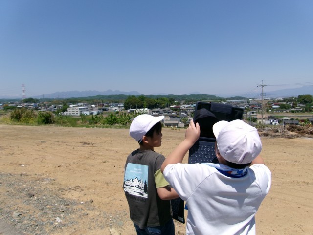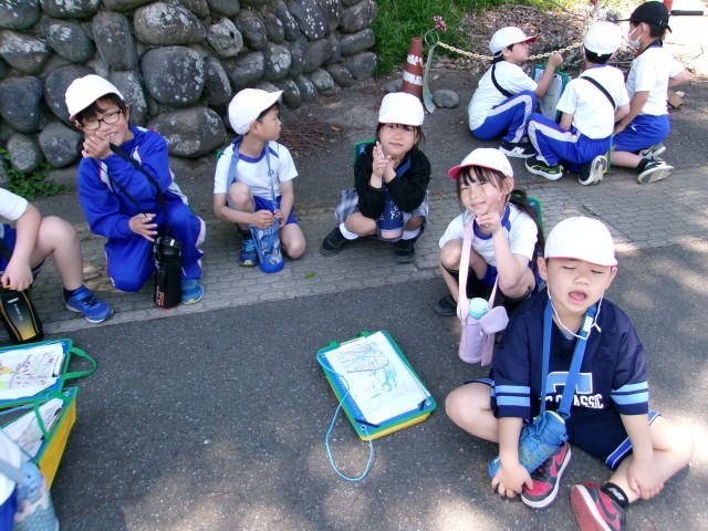 地図で確認した通り、学校のまわりの探検に出かけました。