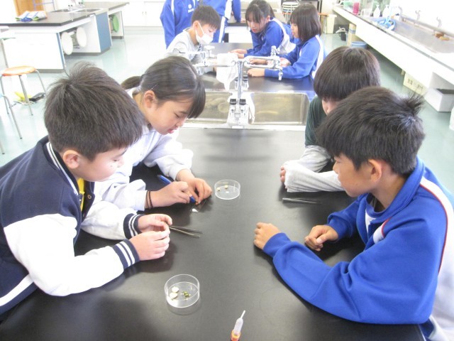 5月7日(水)5年生 理科 公開日 2025/05/07 更新日 2025/05/07 できごと 発芽する前と後の子葉のようすをヨウ素液を使って調べました。 子葉の中のでんぷんは、発芽するときの養分として使われることがわかりました。 +6
