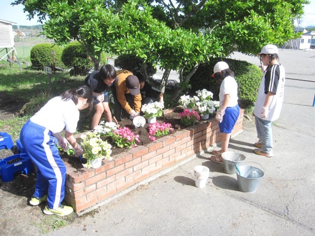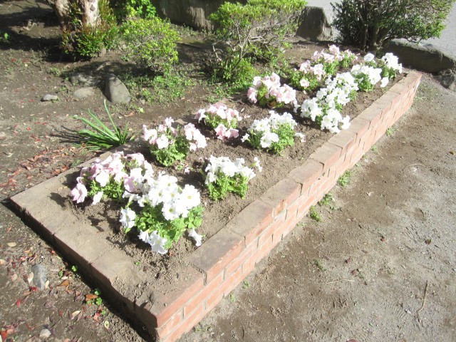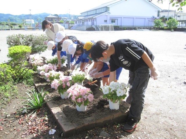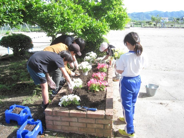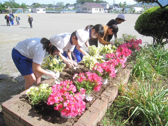 5月7日(水)環境整備委員会(緑の少年団) 公開日 2025/05/07 更新日 2025/05/07 できごと パンジーとビオラが徒長してきたので、ペチュニアに植え替えました。このペチュニアは、卒業式の会場を飾ったものです。整枝したら、たくさん花を咲かせるようになりました。 +7