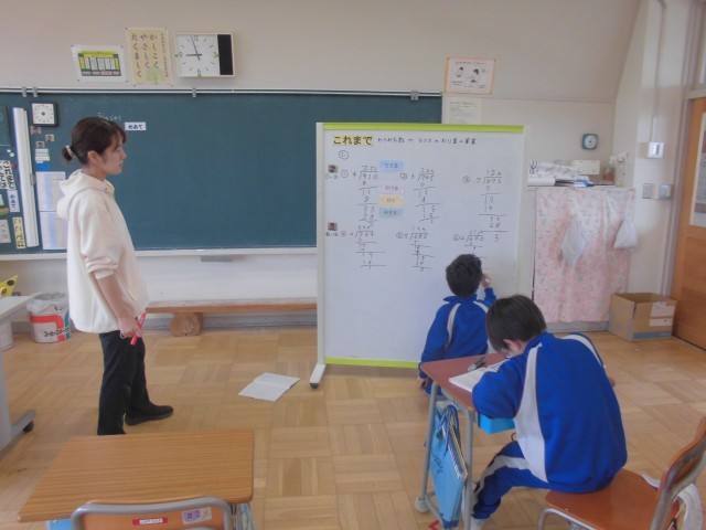 5月14日(水)ひまわり 生活&算数 公開日 2025/05/14 更新日 2025/05/14 できごと 交流学級でアサガオの観察記録をしているようすと、教室で割り算の筆算を頑張っているようすです。 +2