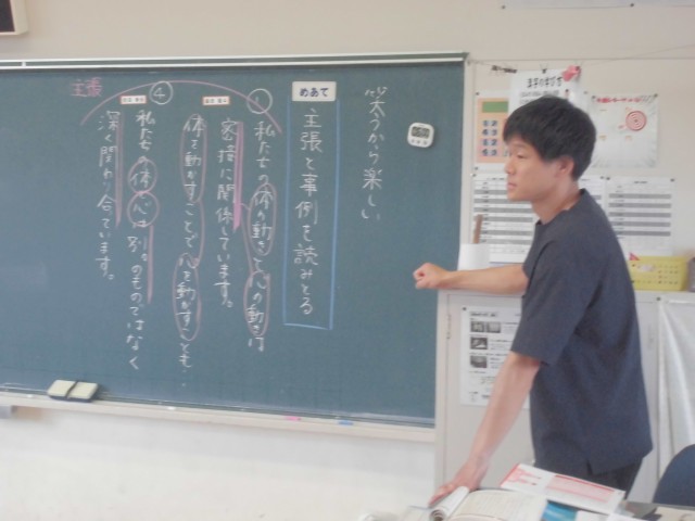 本文の中から、筆者の「主張」とその「事例」を読み分ける場面の学習でした。