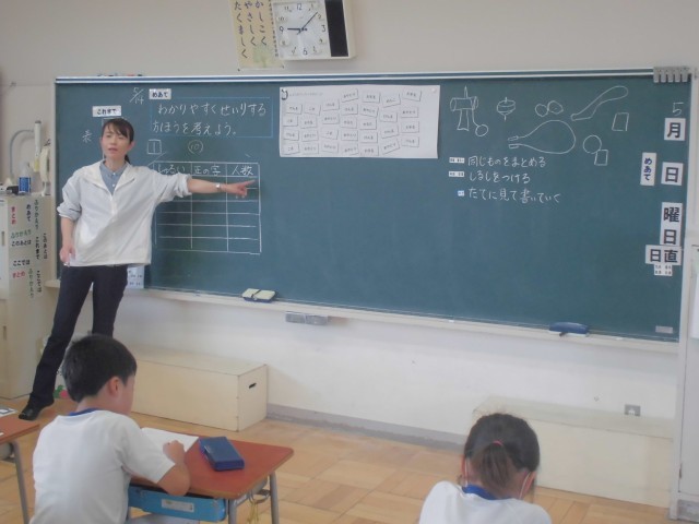 たくさんあるデータを整理する方法を見つけます。「正」の字で5つごと整理することを学びました。