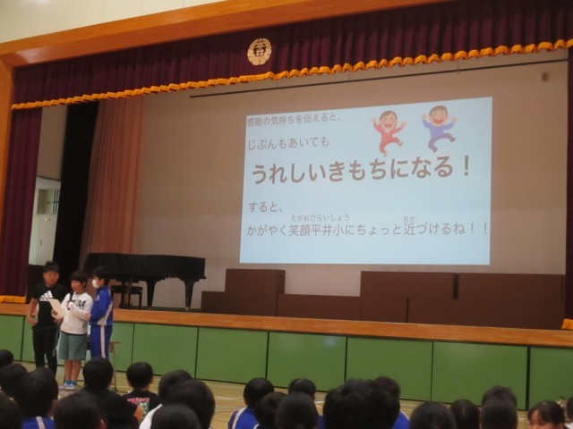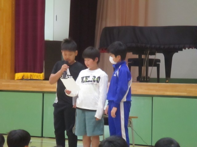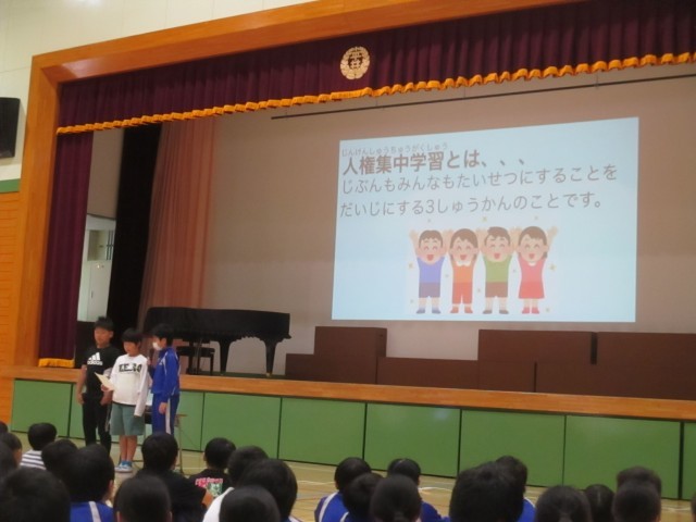 5月14日(水)人権集会 公開日 2025/05/14 更新日 2025/05/14 できごと 前期の人権集中学習が始まりました。自分も大切、みんなも大切を合い言葉に、校長からは授業が楽しくなるポイントを、児童会からは感謝の言葉を伝え合おうと提案されました。 +7
