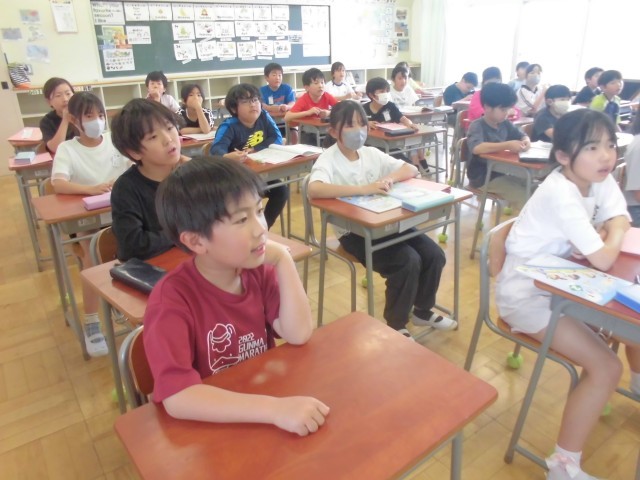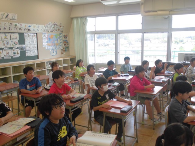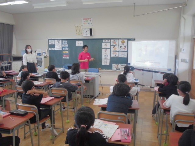 楽しい英語の動画を見ながら、元気いっぱいなALTの先生と一緒に、英語で歌をうたいます。