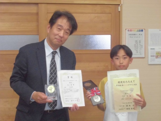 県内の様々な長距離ランニングに参加して、入賞した表彰です。盾やメダルが立派なものばかりです。