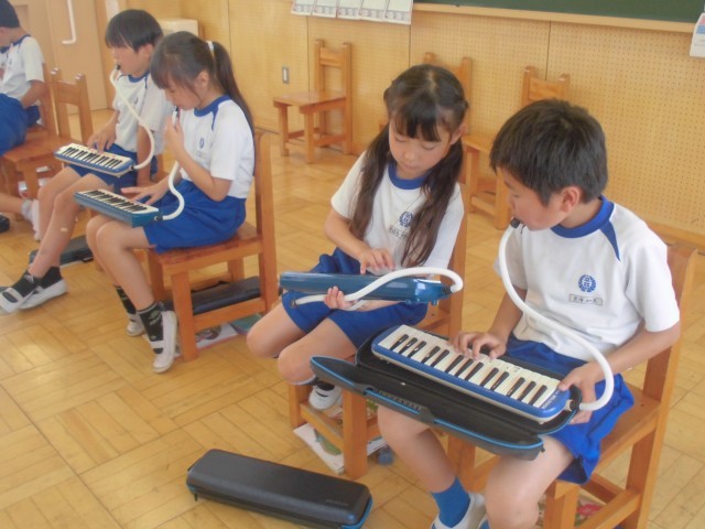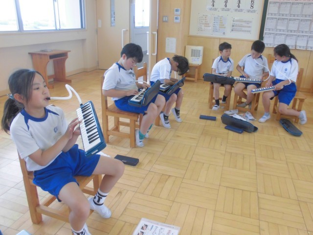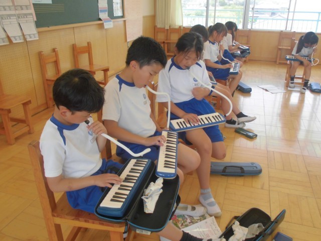 鍵盤ハーモニカの練習タイムでした。