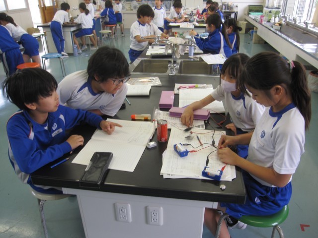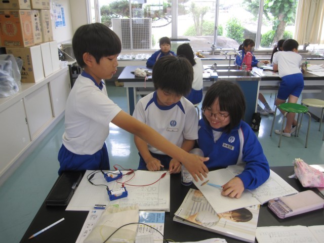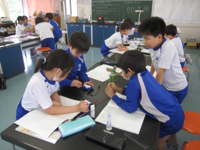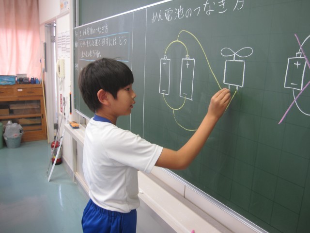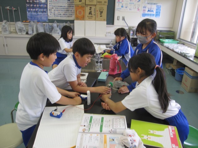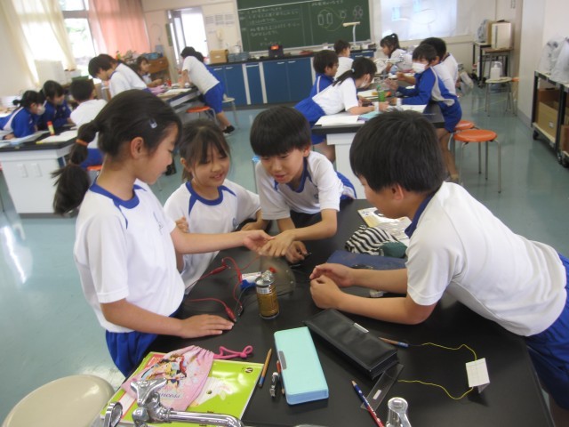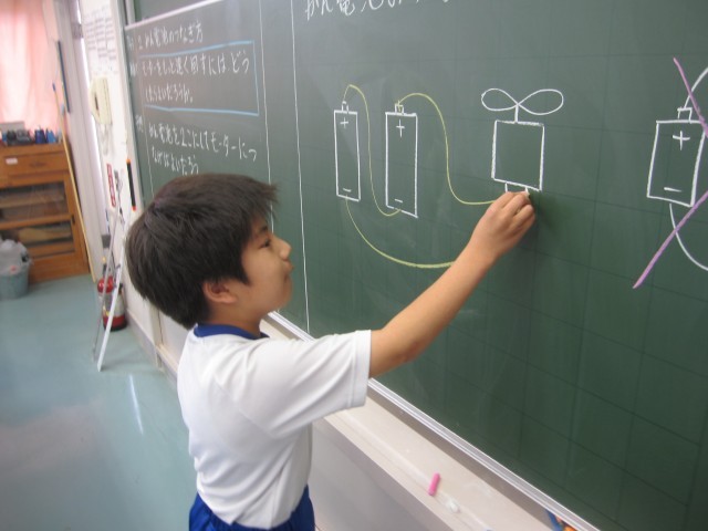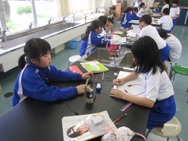 5月23日(金)4年生 理科 公開日 2025/05/23 更新日 2025/05/23 できごと モーターをもっと速く回すにはどうしたらいいか調べました。かん電池2こを直列につなぐと速く回ることがわかりました。 +7