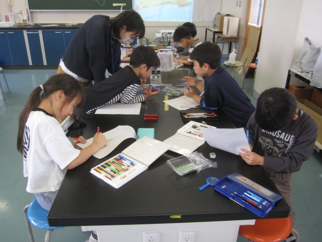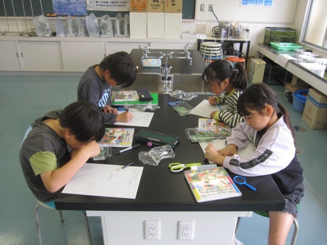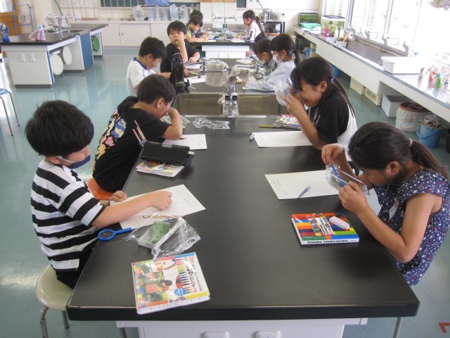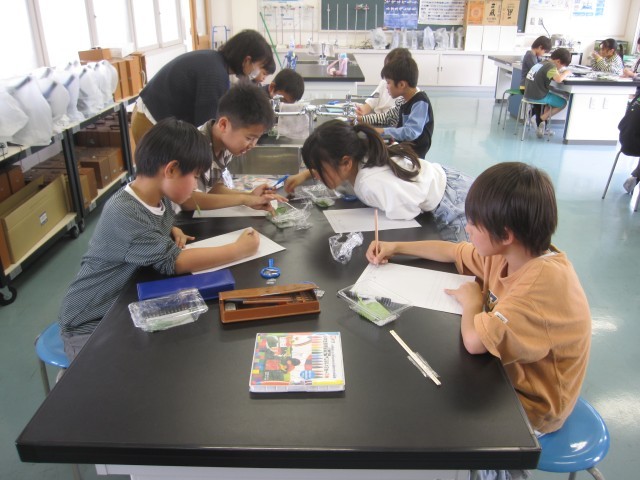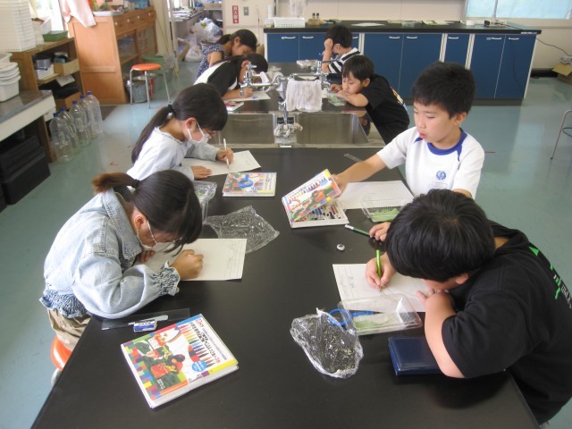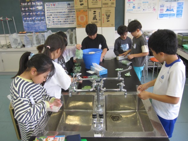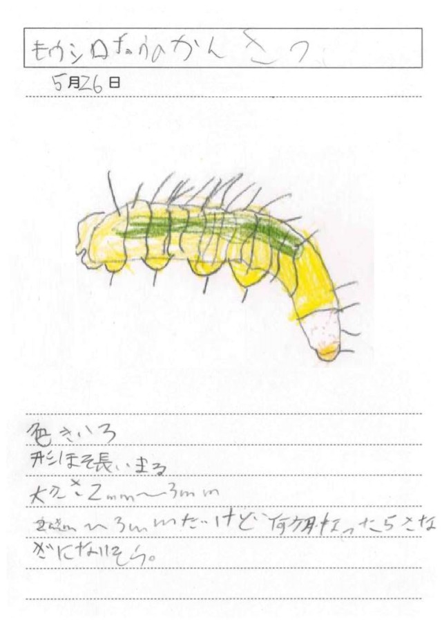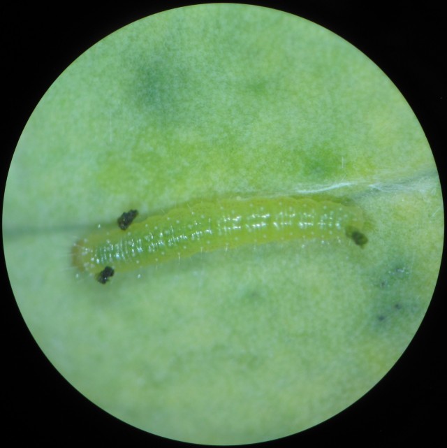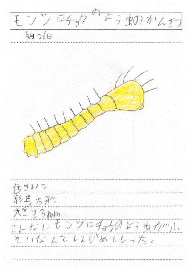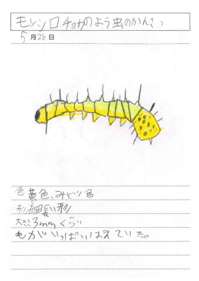 モンシロチョウのたまごがふ化しました。1齢幼虫を観察しました。