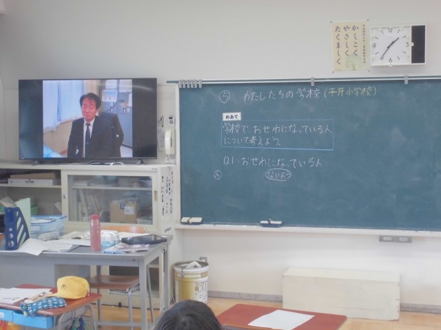 5月26日(月)2年生 道徳 公開日 2025/05/26 更新日 2025/05/26 できごと 学校の中でお世話になっている人を考えます。やはり、担任の先生の人気?は絶大で、担任の先生を挙げる子どもが大勢でした。 +4