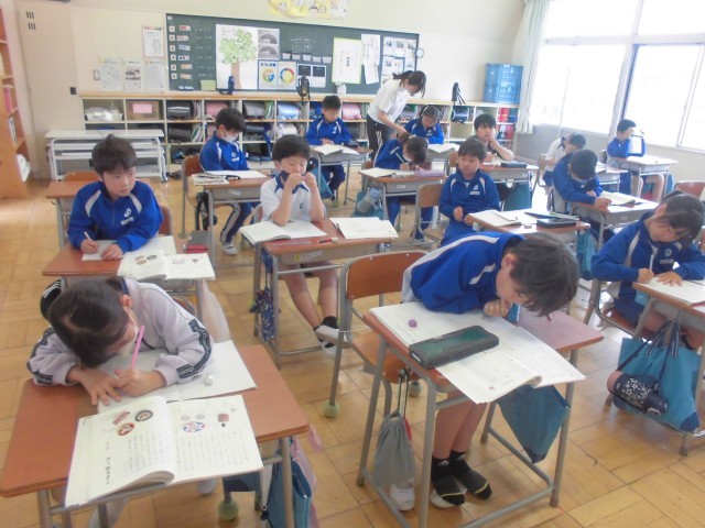 5月27日(火)3年生 国語 公開日 2025/05/27 更新日 2025/05/27 できごと 「これまで」の学習がきれいに、黒板横のホワイトボードにまとめてあります。今回は、数あるコマの中でお気に入りのコマを理由をつけて文章にまとめます。 +3