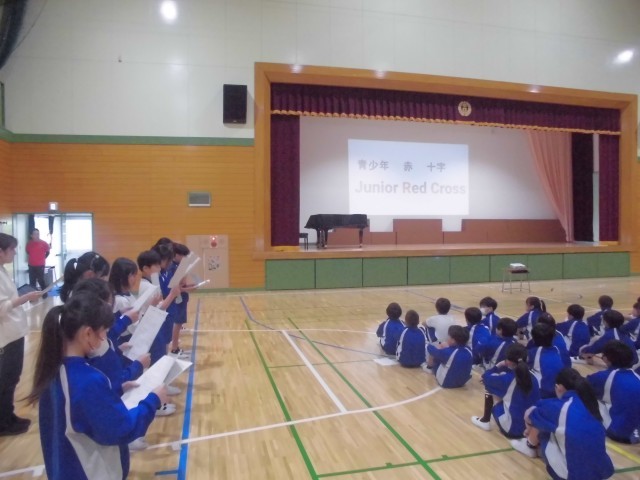 5月27日(火)JRC登録式 公開日 2025/05/27 更新日 2025/05/27 できごと JRC(青少年赤十字)への登録式を行いました。平井小は30年前からの登録で、つい先日、日本赤十字社から表彰されたばかりでした。JRC委員会が中心となり、スライドで説明したり、誓いの言葉を読み上げたりと、大活躍でした。 +5