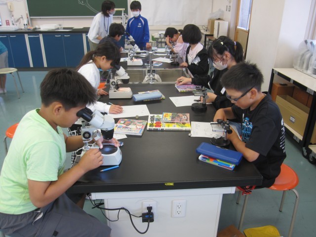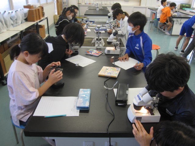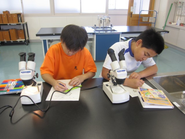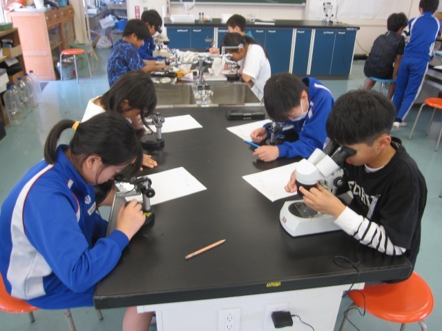 メダカのたまごがふ化したので、双眼実体顕微鏡や解剖顕微鏡で子メダカ観察しました。
