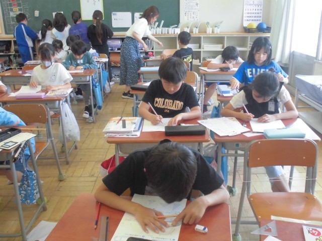 5月29日(木)4年生 算数 公開日 2025/05/29 更新日 2025/05/29 できごと 振り返りのプリントやワークに取り組みます。黒板に流れがていねいに示されているので、みんな自主的に活動しています。 +3