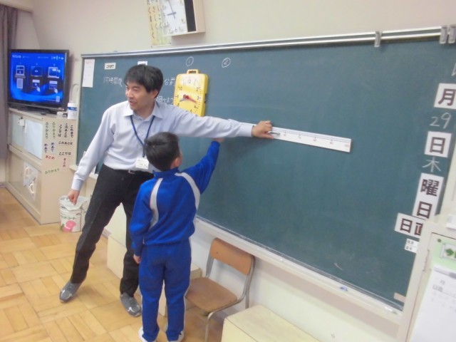 何分前?何分後? 定規を使うと、前後の感覚がつかみやすいことを確認しました。
