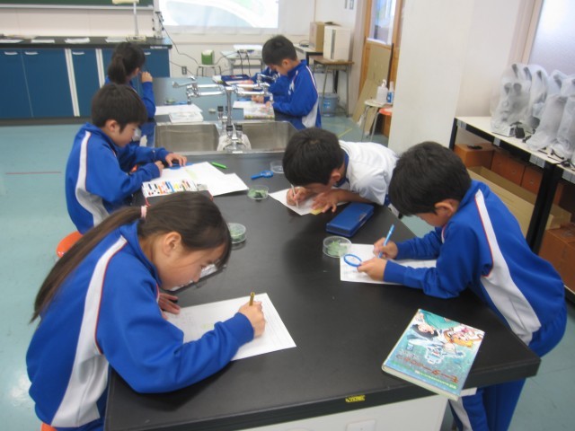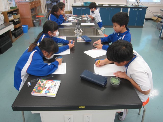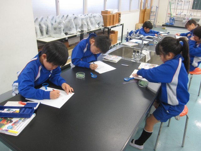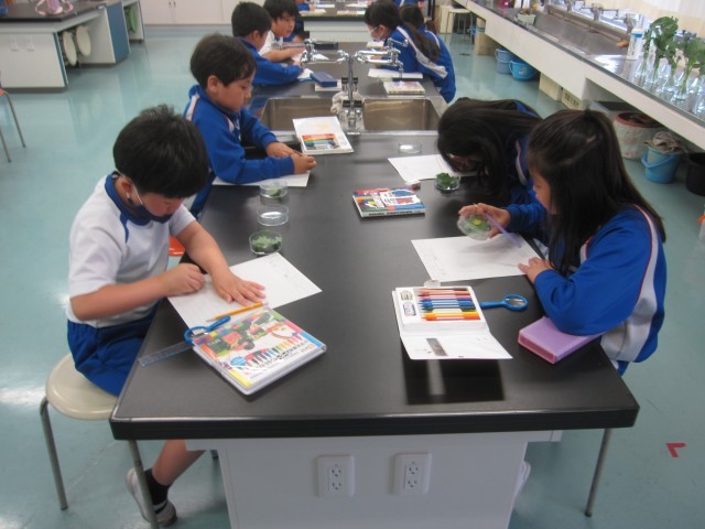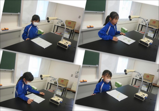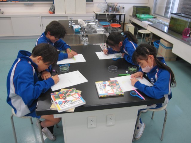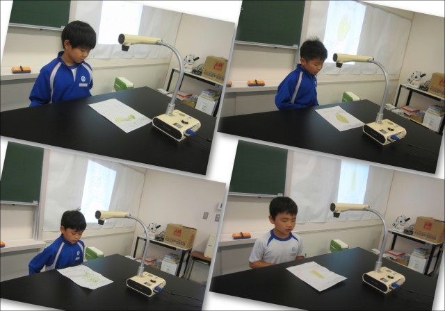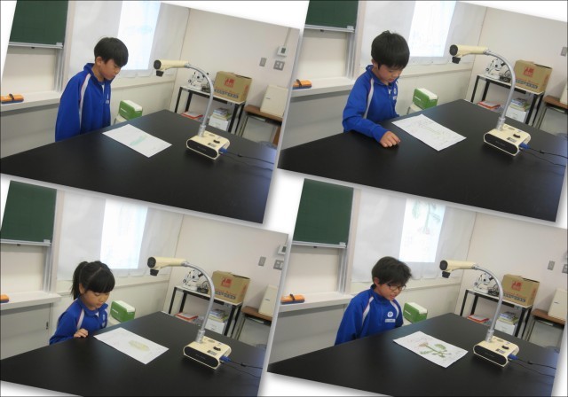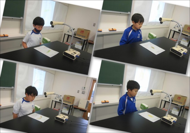 モンシロチョウの幼虫の観察をしました。その後、観察記録カードの発表会をしました。