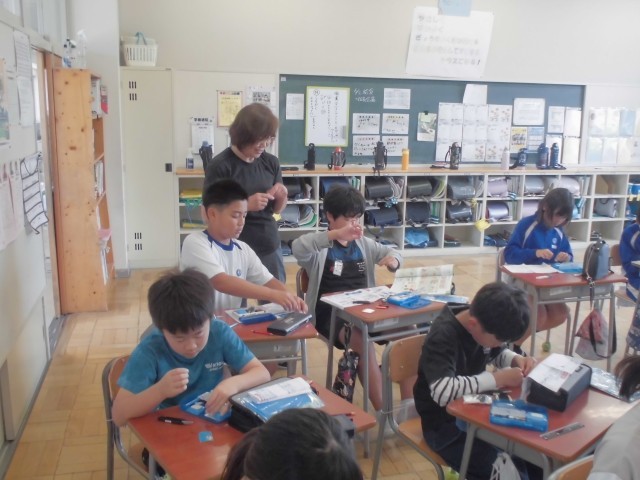 家庭科で裁縫の最初の授業です。講師の方をお招きして、きめ細かく指導していただきました。