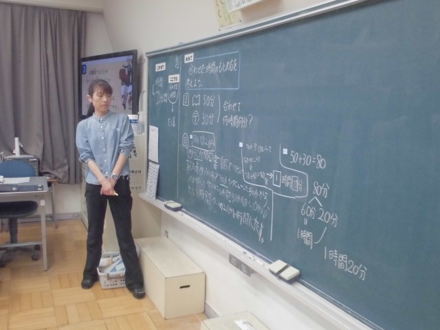 黒板に自分で書いた、自分の考え方を堂々と発表します。