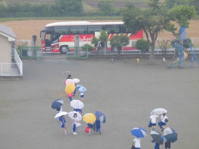 6月3日(火)2年生 みずとぴあ 公開日 2025/06/03 更新日 2025/06/03 できごと あいにくの雨ですが、室内温水プールなので、こんなときは安心です。市が用意してくれたバスで、みずとぴあへ移動します。