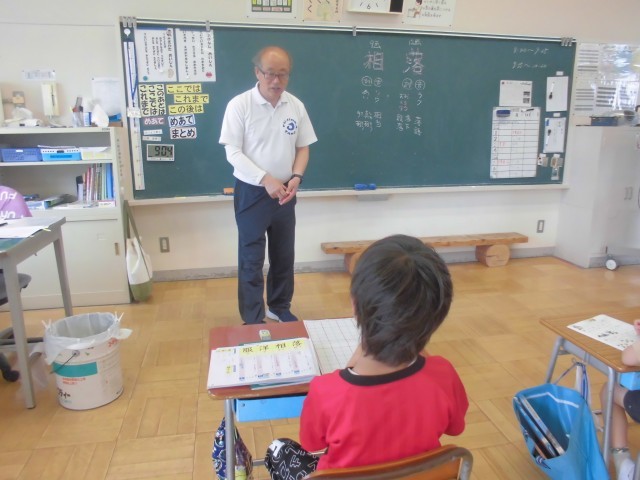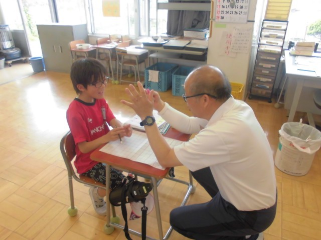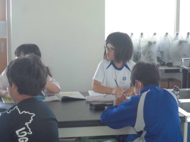 新出漢字を丁寧に学習するようすと、交流学級の理科のようすです。
