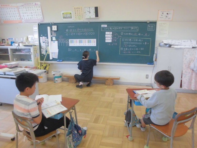 6月5日(木)ひまわり 算数 公開日 2025/06/05 更新日 2025/06/05 できごと 1兆までの数字は、交流学年の授業と同じ内容で、同じ進度です。ついたてをうまく利用し、集中できるよう工夫しています。 +1