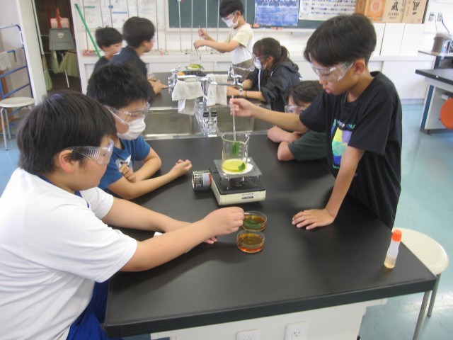 6月6日(金)6年生 理科 公開日 2025/06/06 更新日 2025/06/06 できごと 6月4日(水)にセットした実験の結果を確認しました。植物の葉に日光が当たると、でんぷんができることがわかりました。 +7