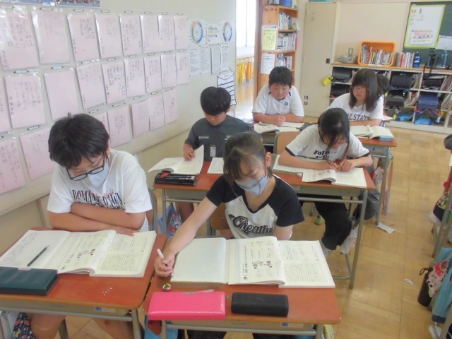 文の構成のパターンを分類しながら、問題を解いていきます。全員がとてもいい集中です。